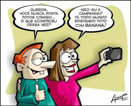 Em 2014, outra das selfies mais comuns foi de tirar selfie com bananas em apoio contra o racismo em ação iniciada pelo Daniel Alves quando um torcedor atirou bananas dentro do campo quando ele ia cobrar escanteio para o Barcelona. Claro, o cartunista André mostrou que existem outros tipos de bananas para tirar selfie. Rsrss